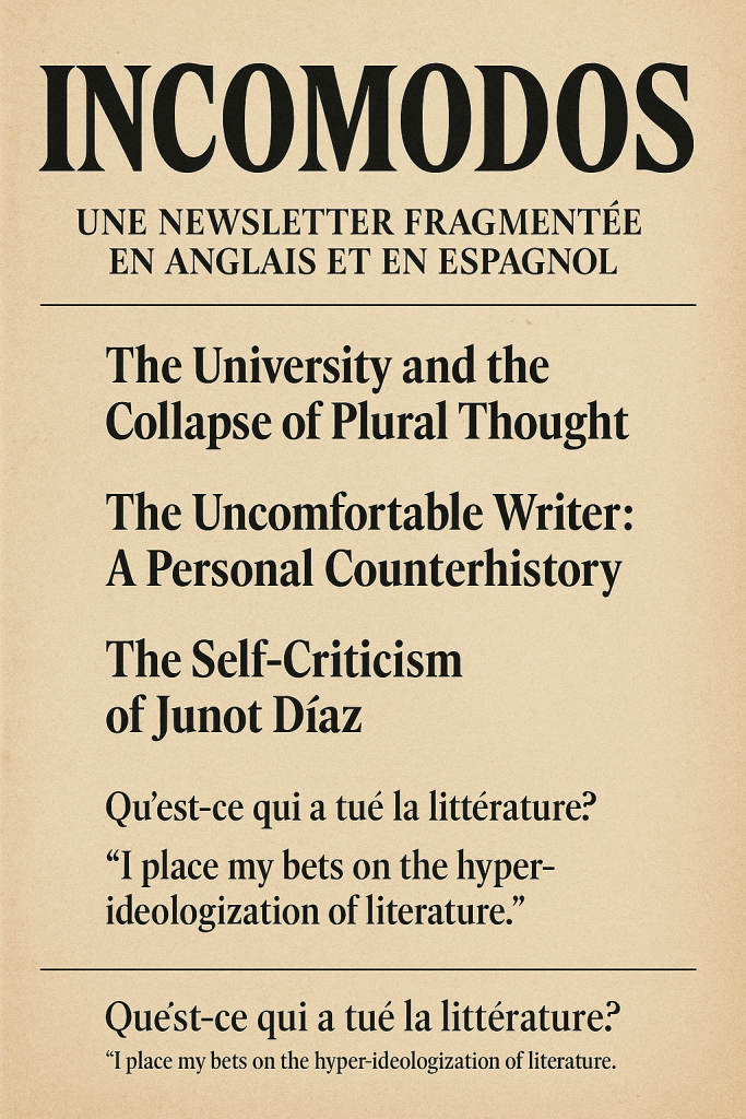 ¿Y qué pasa con aquellos que no encajan? Escritores que no escriben desde la culpa. Que critican tanto al imperio como a la revolución. Que se niegan a romantizar la pobreza o a instrumentalizar la identidad. Se convierten en casos atípicos. O peor: problemáticos. El sistema no sabe qué hacer con ellos, así que los borra. No con censura, sino con silencio.