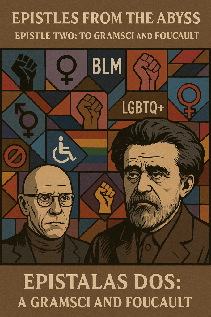 I write to you from a time in which your ideas have triumphed… and failed. Where your names endure not as critical theory, but as institutional dogma. Where the cultural hegemony envisioned by one, and the dissolution of the subject theorized by the other, have merged to produce not liberation, but unintelligibility. A minefield of identities, pronouns, and constructs demanding obedience.