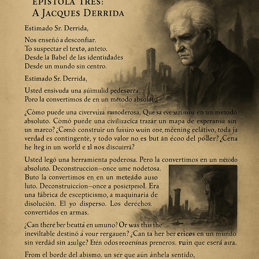 We now see how your ideas were taken up by Michel Foucault, who transmuted power into the very grammar of the social. And by Judith Butler, who reduced gender to pure performance and denied the coherence of the body. And by Lyotard, who proclaimed the death of grand narratives. And by Jean-Luc Nancy, who dissolved community into fragments of being-with.