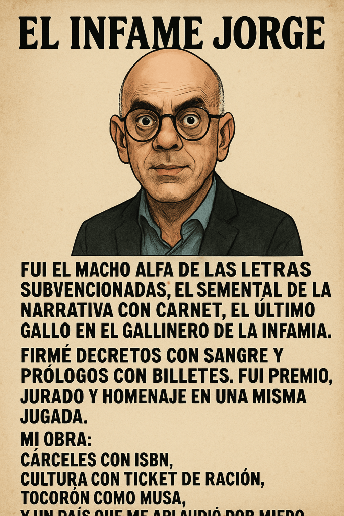 Pero no todo es trauma y distopía. Jorge también le ha alimentado la panza a decenas de burócratas del sector “Panfleto–Libro” en Caracas: los poetas a sueldo, los narradores con cargo, los antologados de oficio, todos untados con ferias, becas, cargos diplomáticos culturales, prólogos de ocasión. La crítica oficialista se tragó su obra como quien traga aceite de ricino con olor a premio: sin placer, pero con disciplina.